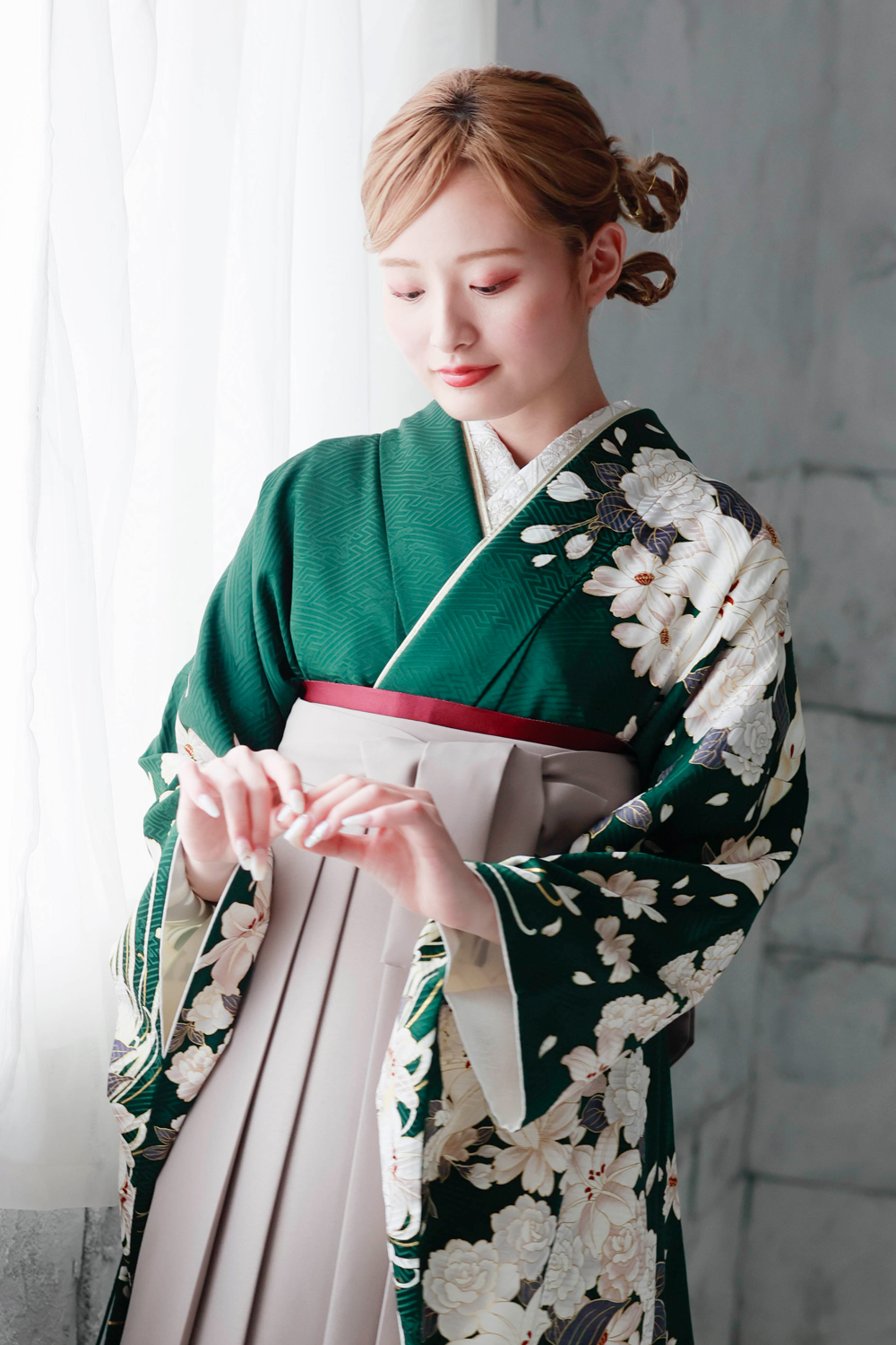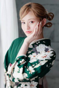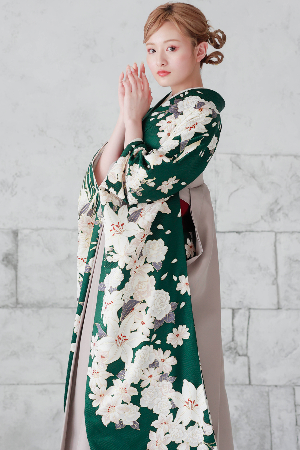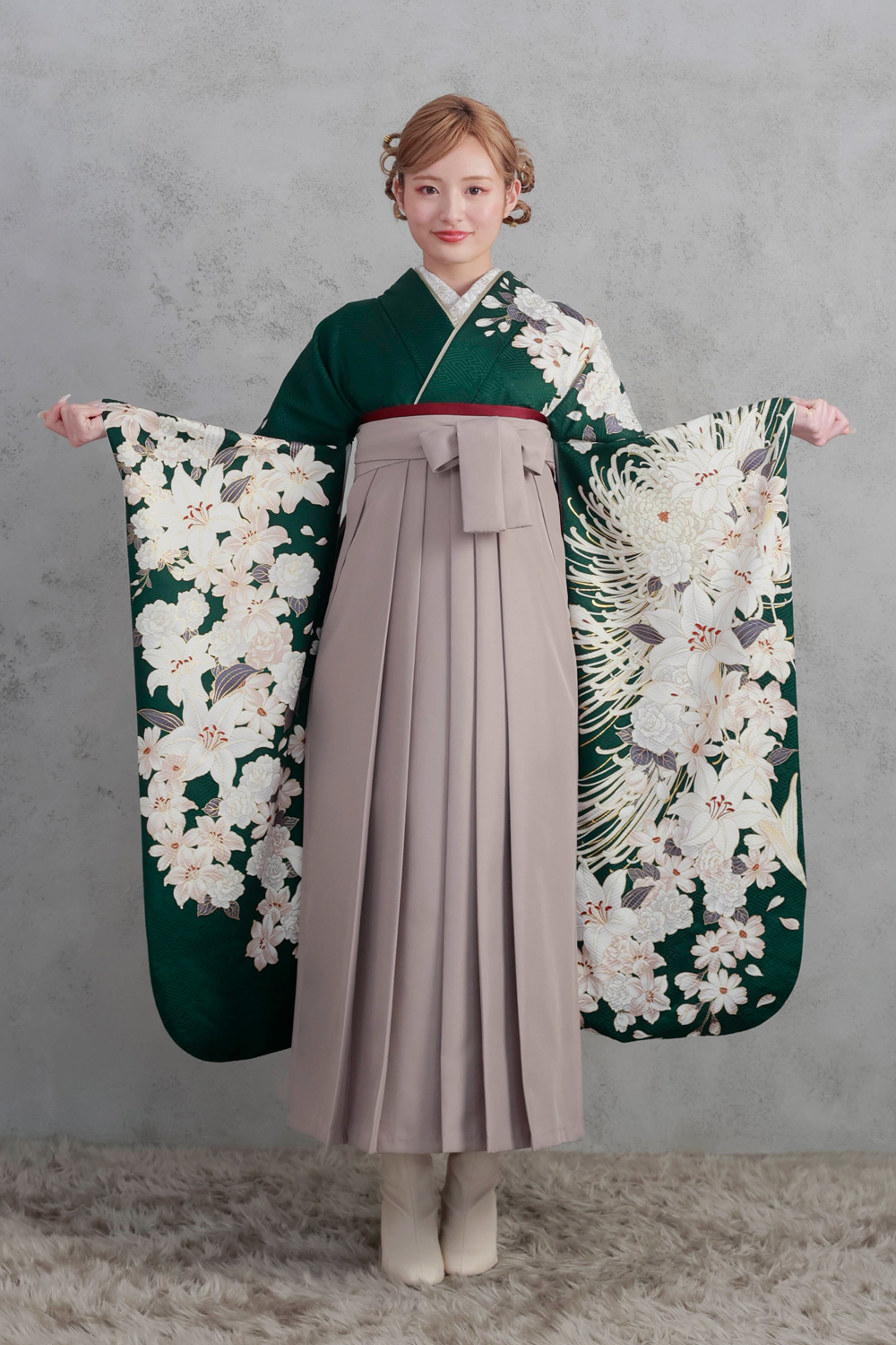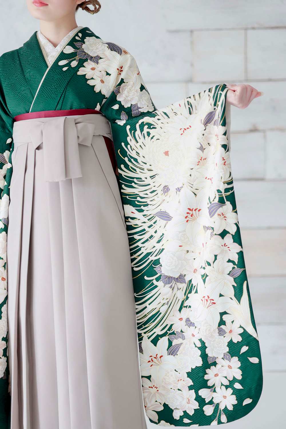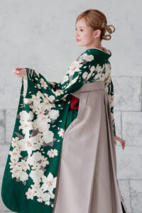 HOME > 袴ラインナップ > 緑系 > 雅-44 緑地 百合と菊