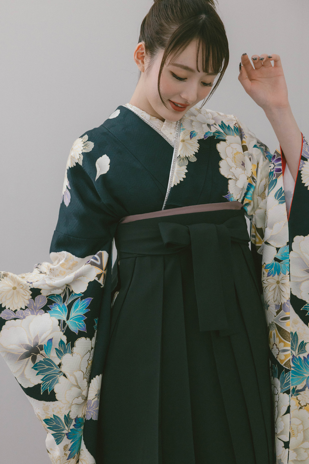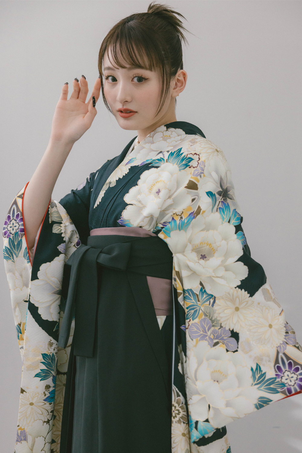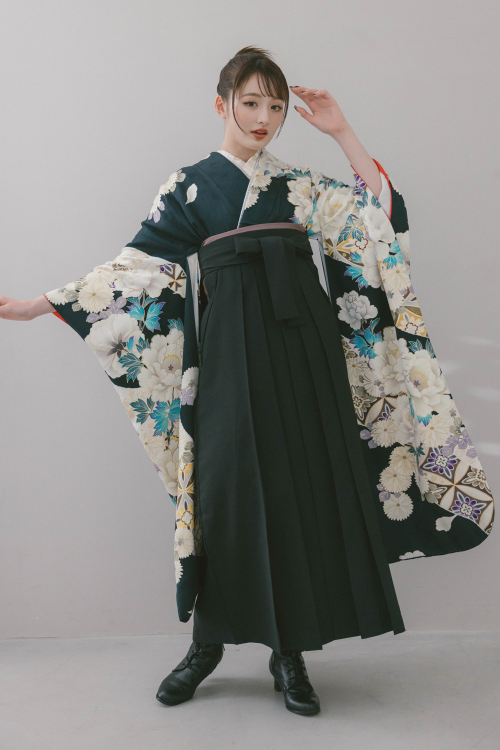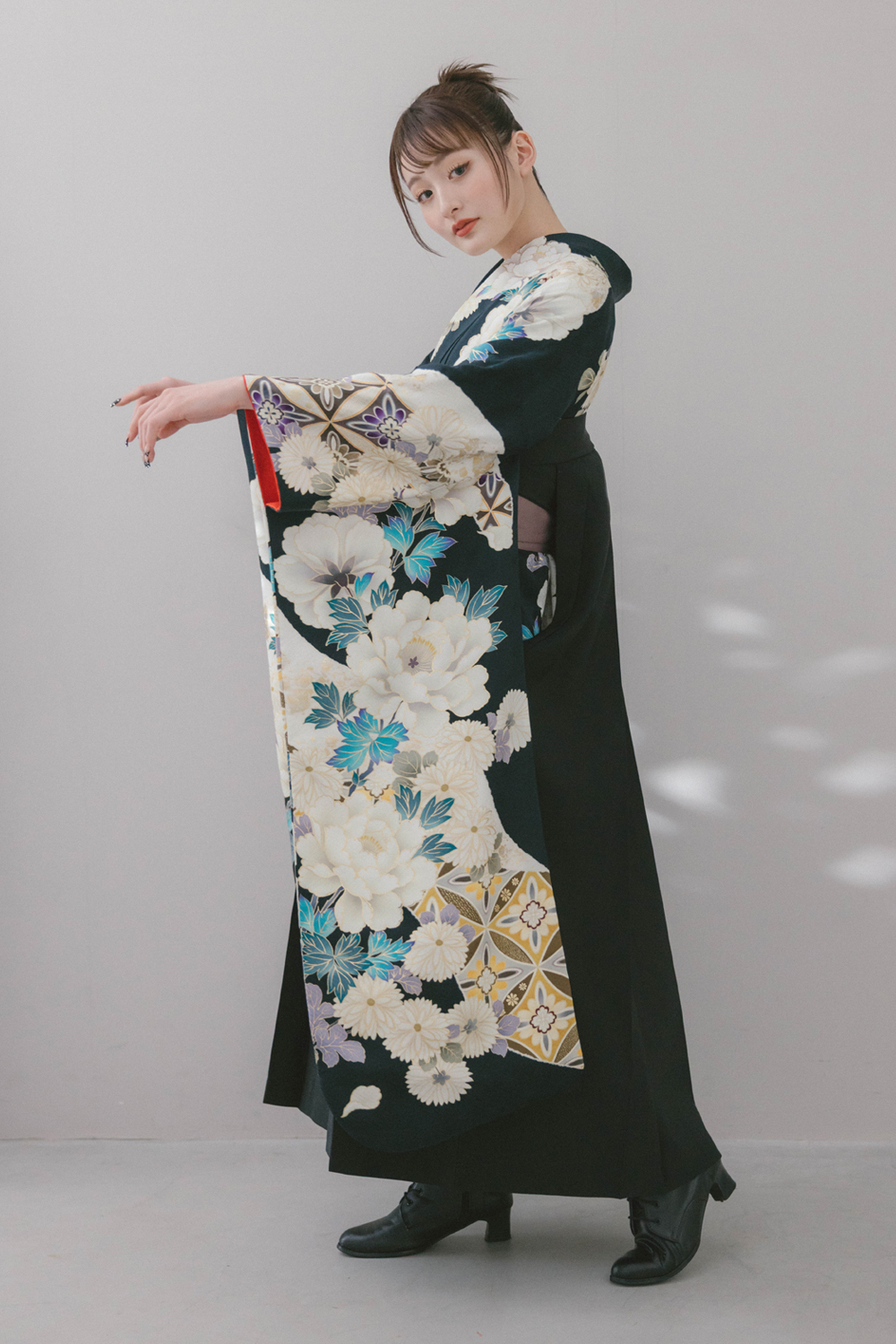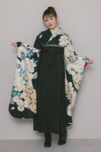 雅-67 黒地に牡丹と菊
