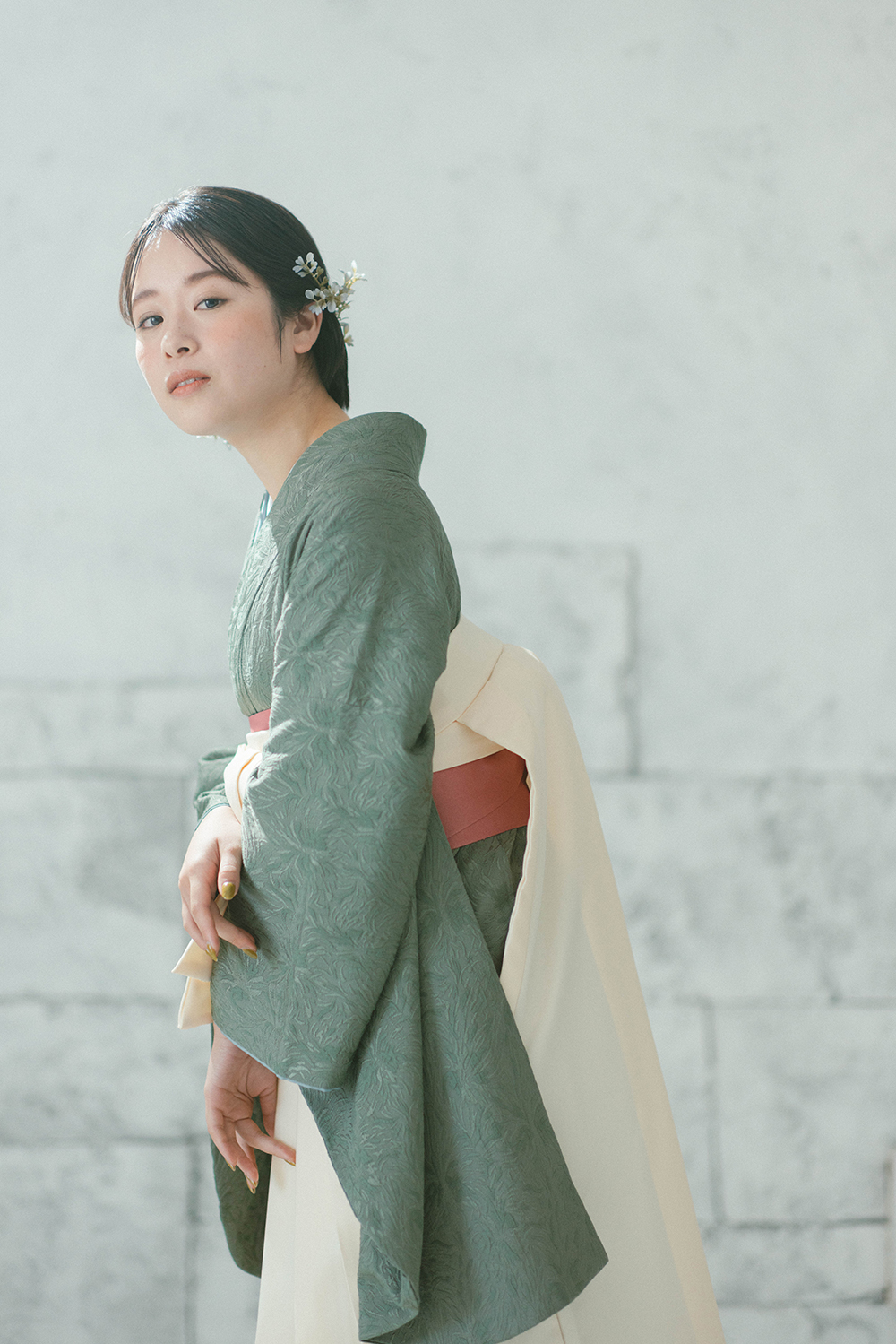 PHOTO フォト ※付属衿および手袋は撮影サンプル用となっております Making Movie メイキングムービー Infomation 商品情報 Product Name 商品名No.9 ジャガード菊 モスグリーン 緑系 クリーム・生成系 白系 ジャガード オリジナル Price 料金着物 No.9袴半衿伊達衿半幅帯 この商品について問い合わせるボタンを押すと、お問い合わせページに遷移します。